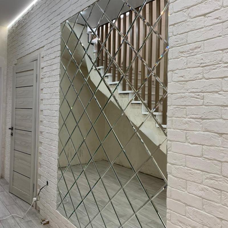 Использована серебряная зеркальная плитка «вытянутый ромб».